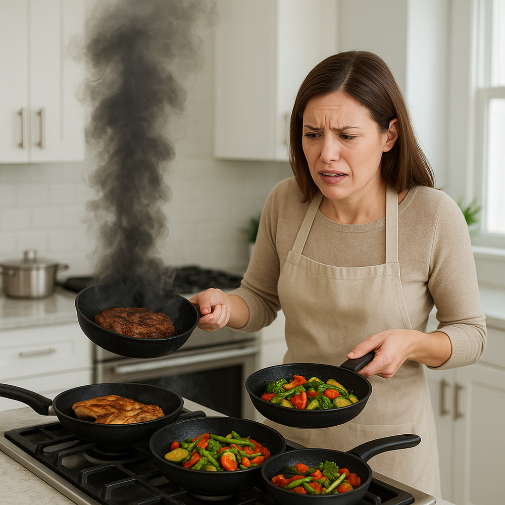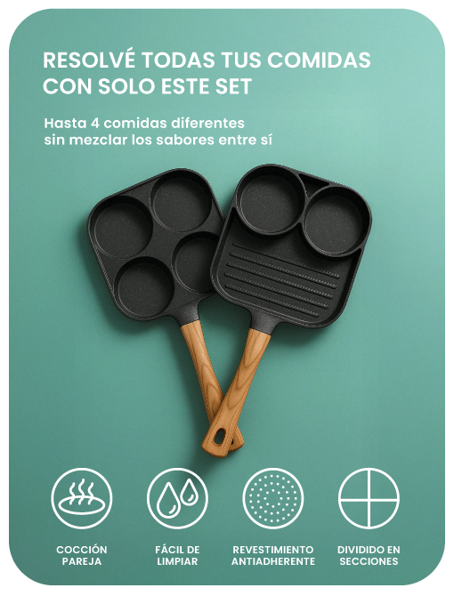 Con el Set de Sartenes MultiCook® podés preparar hasta 4 comidas diferentes a la vez 🍳🥓🥞🥬, en la misma sartén y sin ensuciar de más. Ahorro de tiempo, menos platos que lavar y más comodidad en tu cocina.