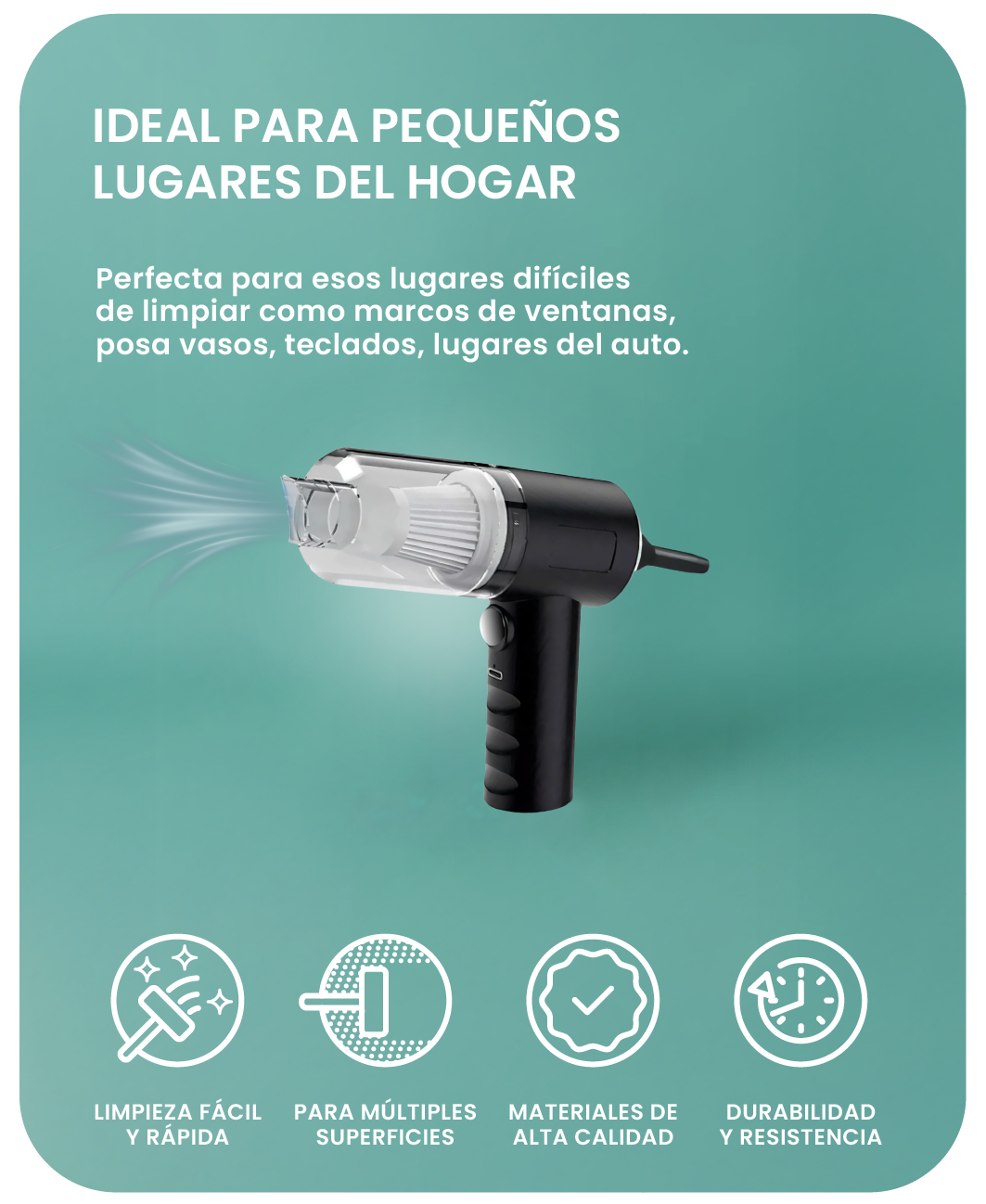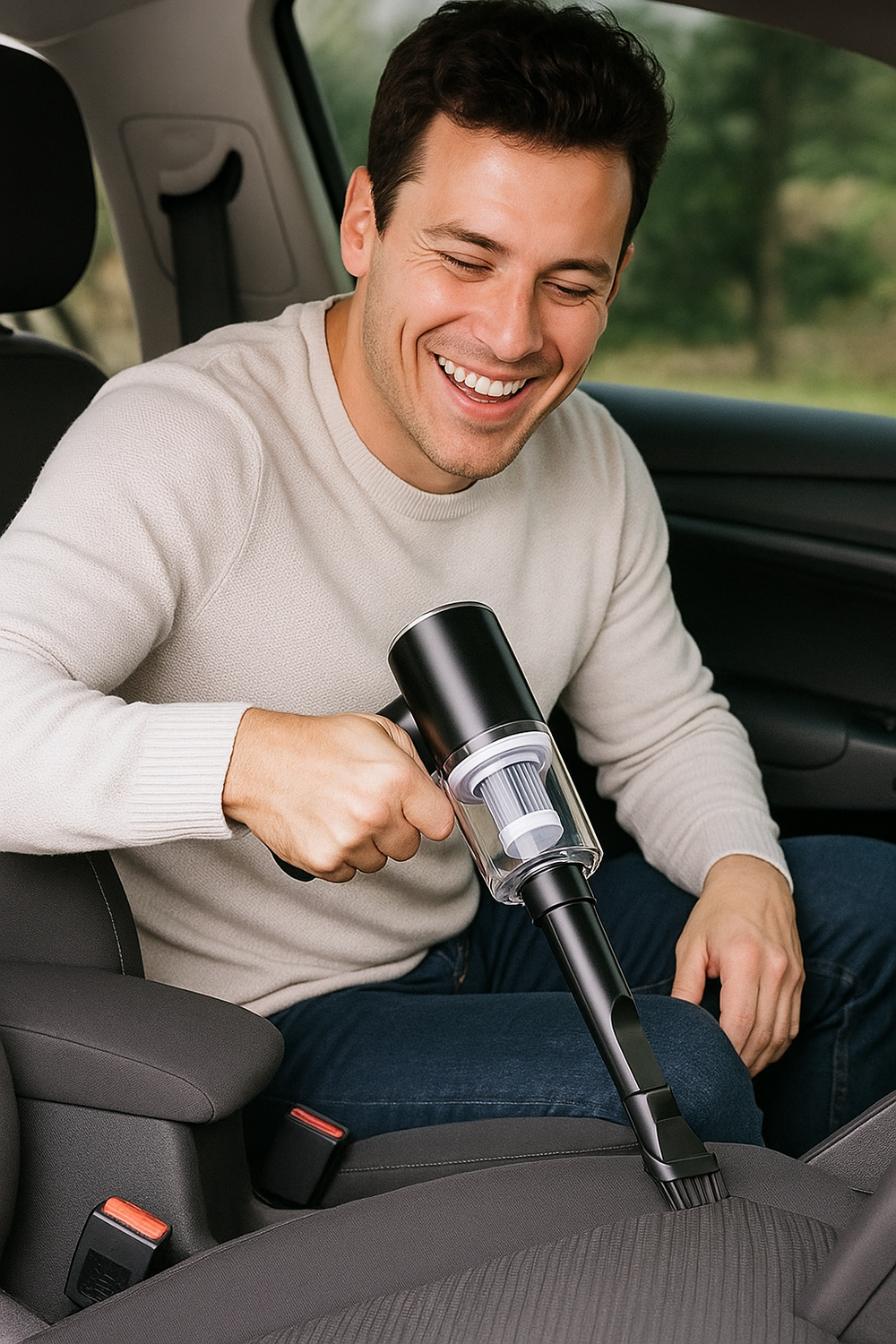 Cuando pedís tu Aspiradora y Sopladora Portátil 2 en 1, recibís todo lo necesario para dejar tu auto y tu casa impecables desde el primer día: