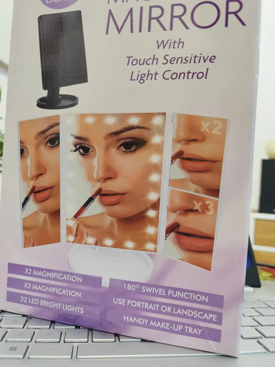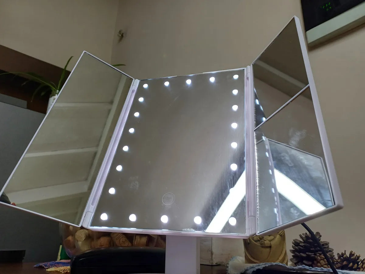 ✅ Espejo tríptico con 3 paneles (2X y 3X de aumento) y luces LED regulables
