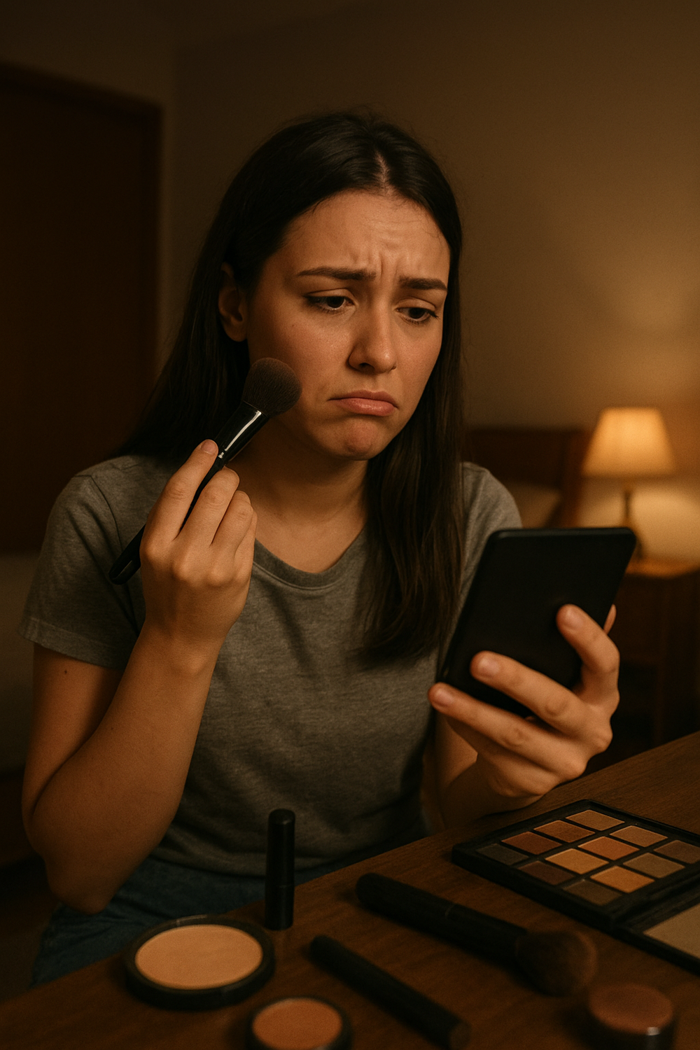 Maquillarte con poca luz, sin ver bien los detalles, terminando con un resultado que no se nota igual afuera. Espejos incómodos, ángulos imposibles y sombras molestas.