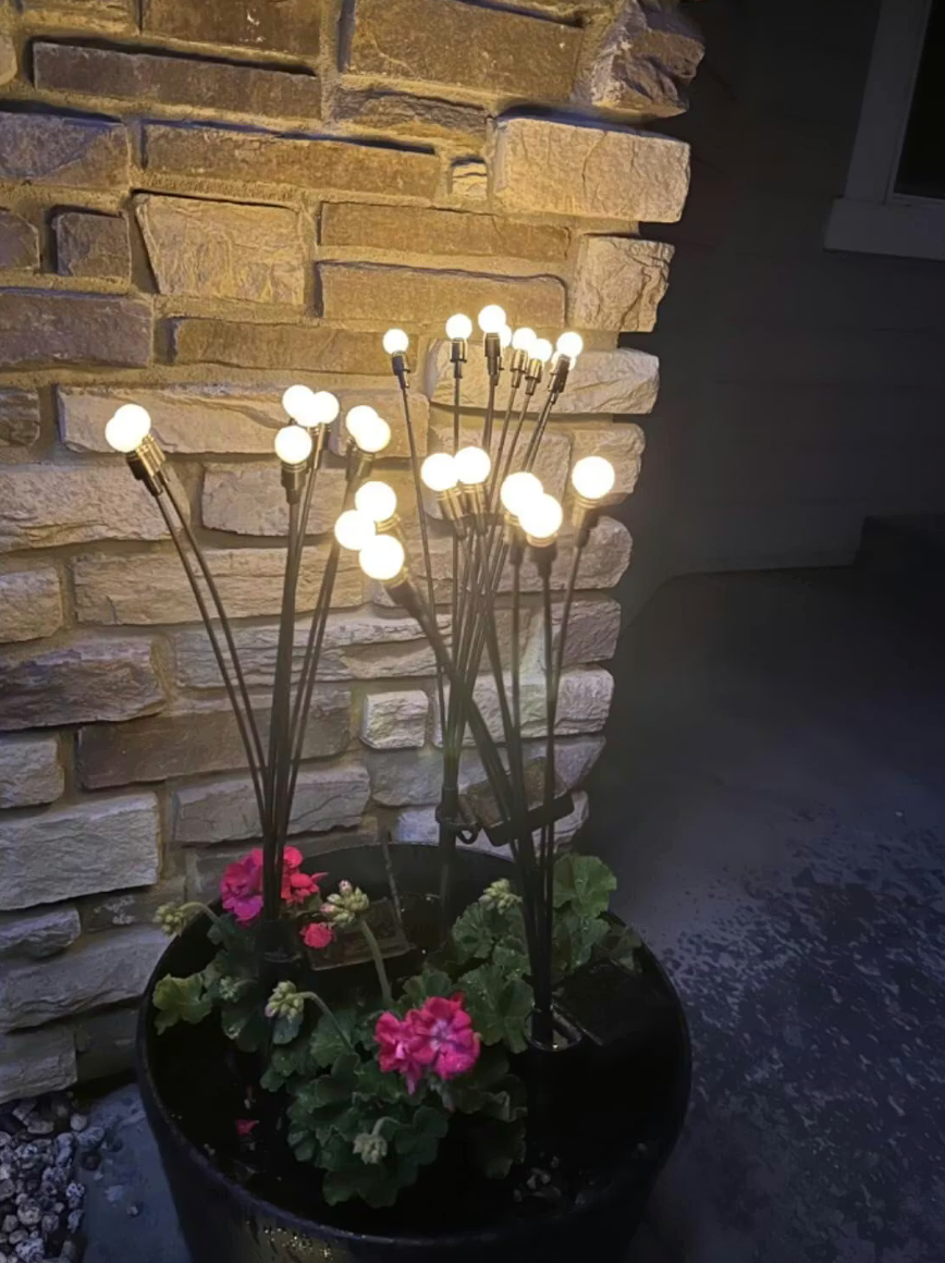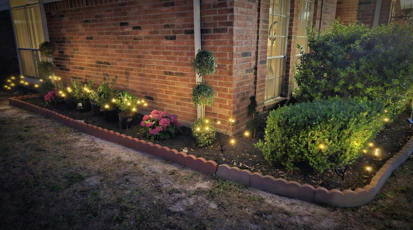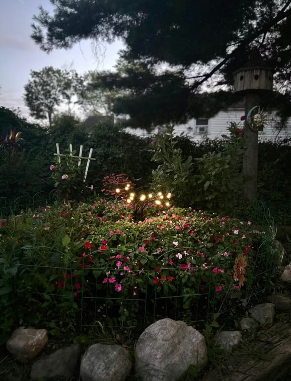 dijo que su jardín se ve mucho más cálido y lindo desde que instaló las luces luciérnaga.
