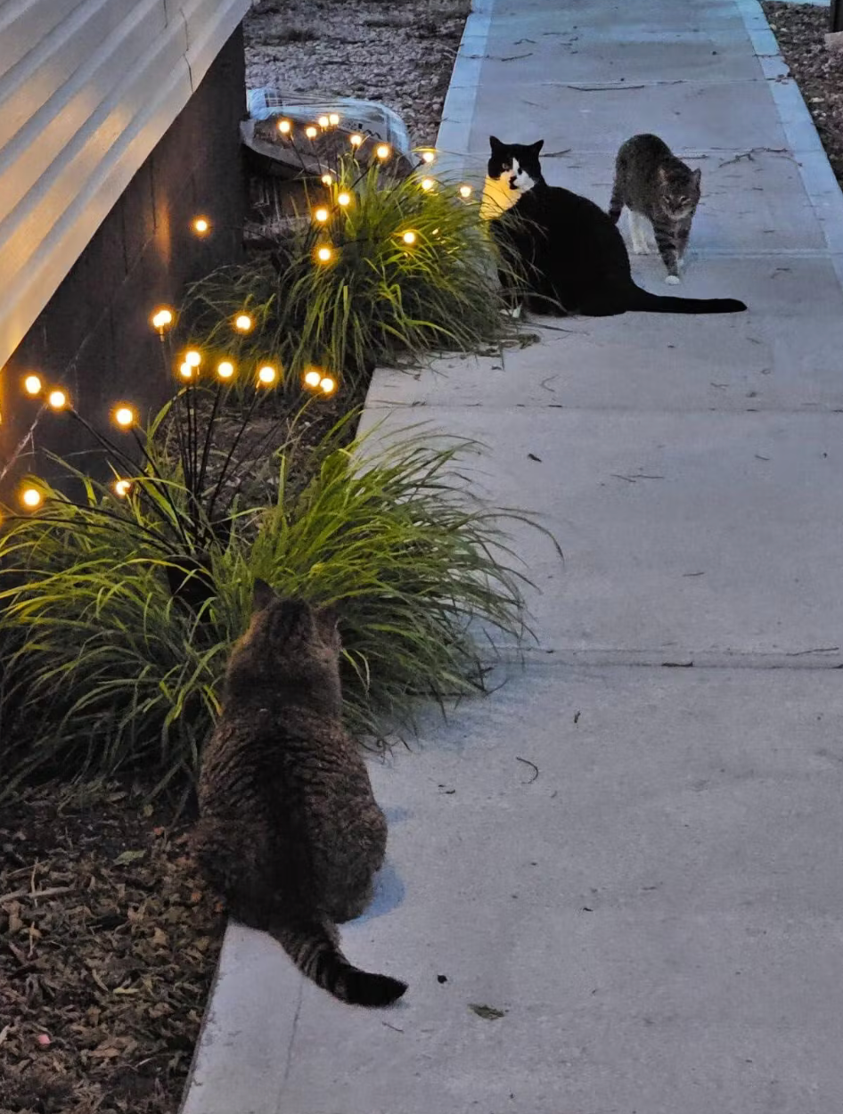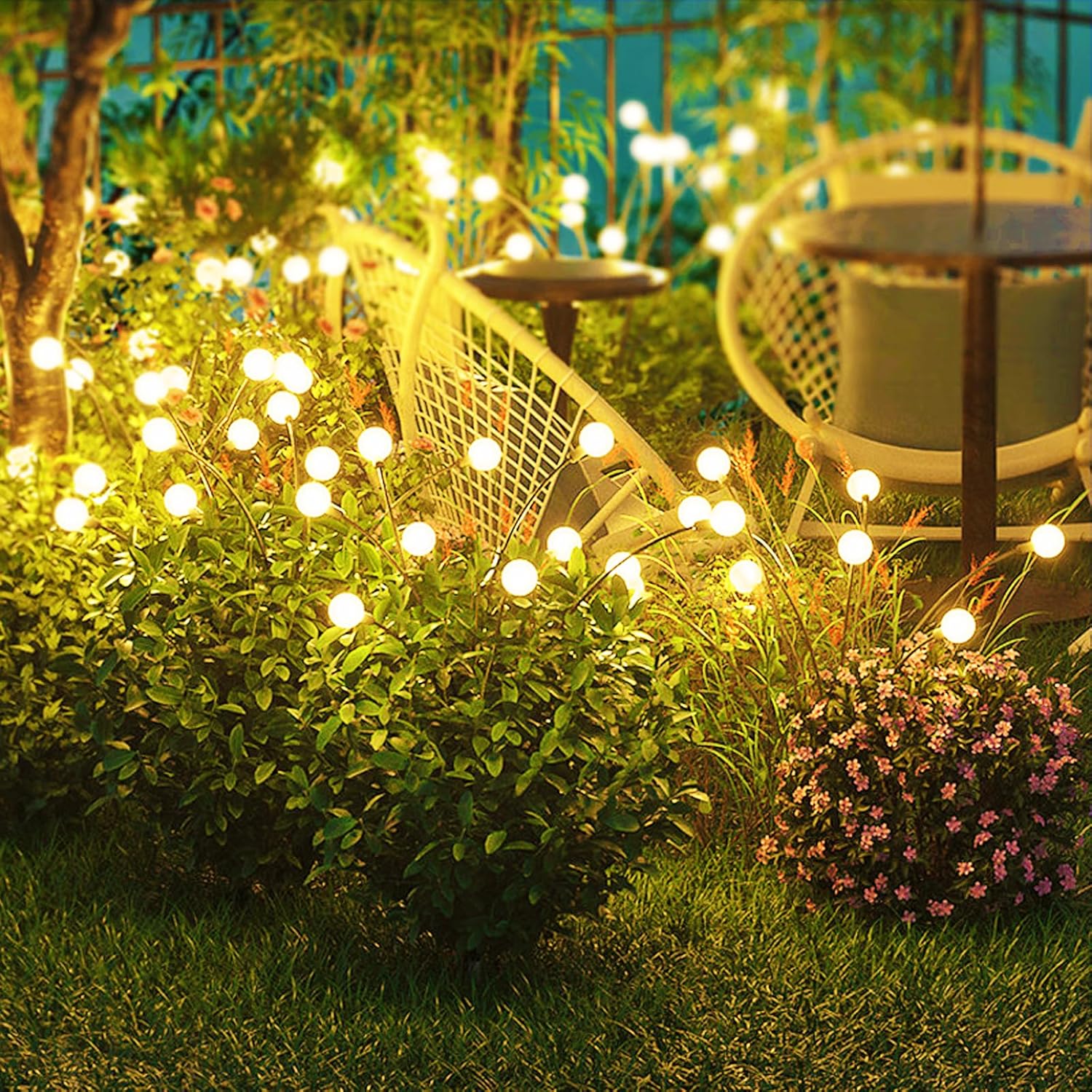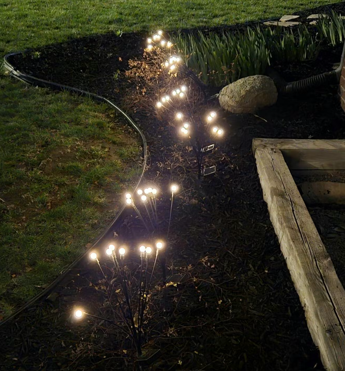 dijo que su jardín se ve mucho más cálido y lindo desde que instaló las luces luciérnaga.