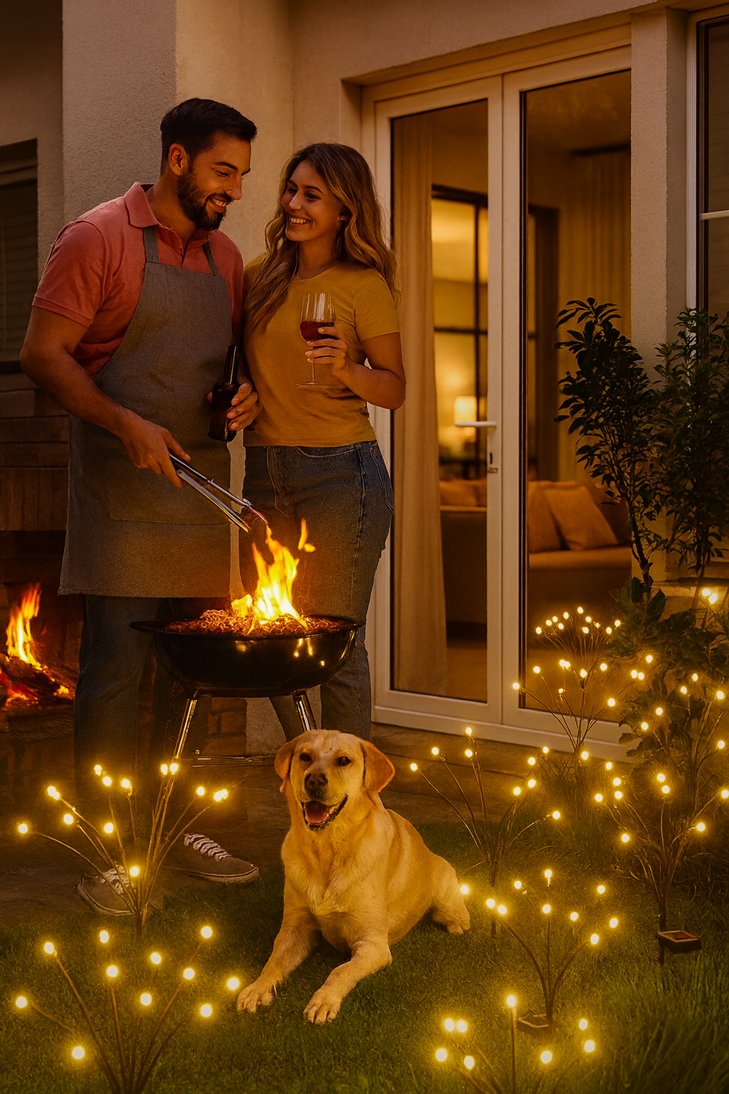 Las luces luciérnaga se cargan con el sol y se encienden solas al anochecer, creando ese efecto cálido ✨ tipo luciérnaga que ves en Pinterest, sin cables ni instalaciones.